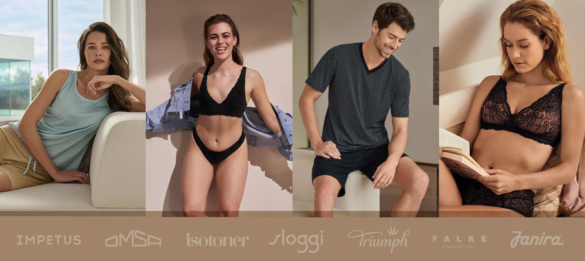 Com vista a fornecer aos nossos clientes a melhor oferta, juntámos ao nosso portefólio produtos de marcas conceituadas como a Triumph, Sloggi, Falke, Impetus, Omsa e a Isotoner.